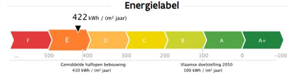 Concrètement, une habitation avec une consommation de 400 kWh/m² par an aura un score PEB de :